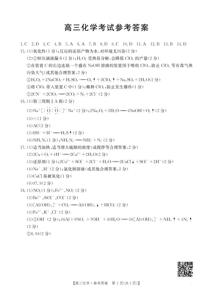 陕西省部分学校高三年级2025届9月联考化学答案