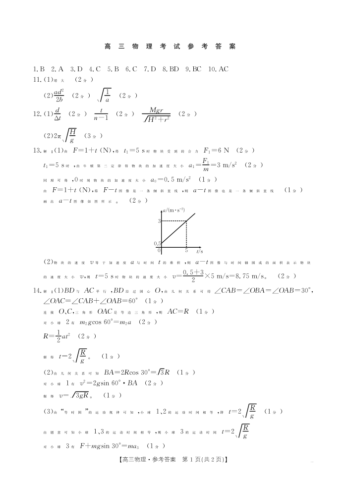 陕西省部分学校高三年级2025届9月联考物理答案
