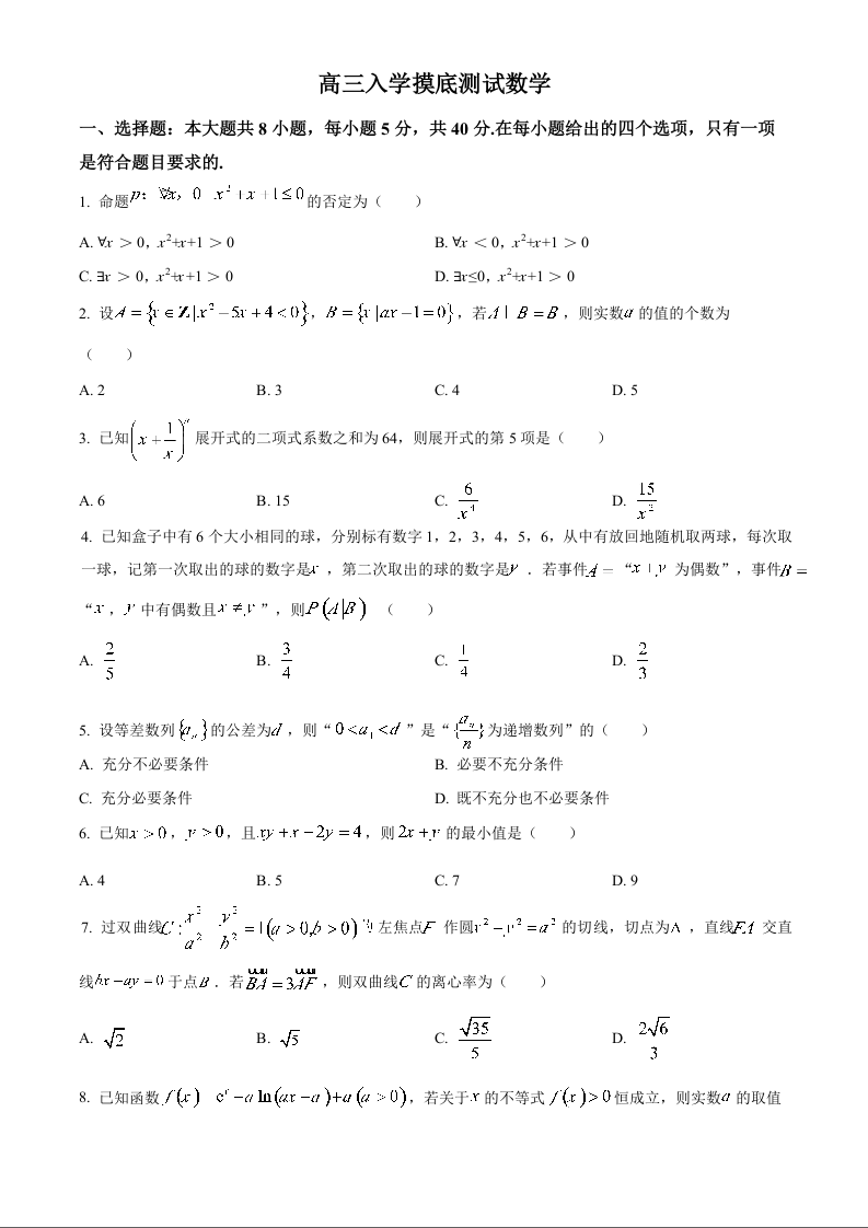 四川省成都列五中学2025届高三入学摸底测试数学试题(原卷版)