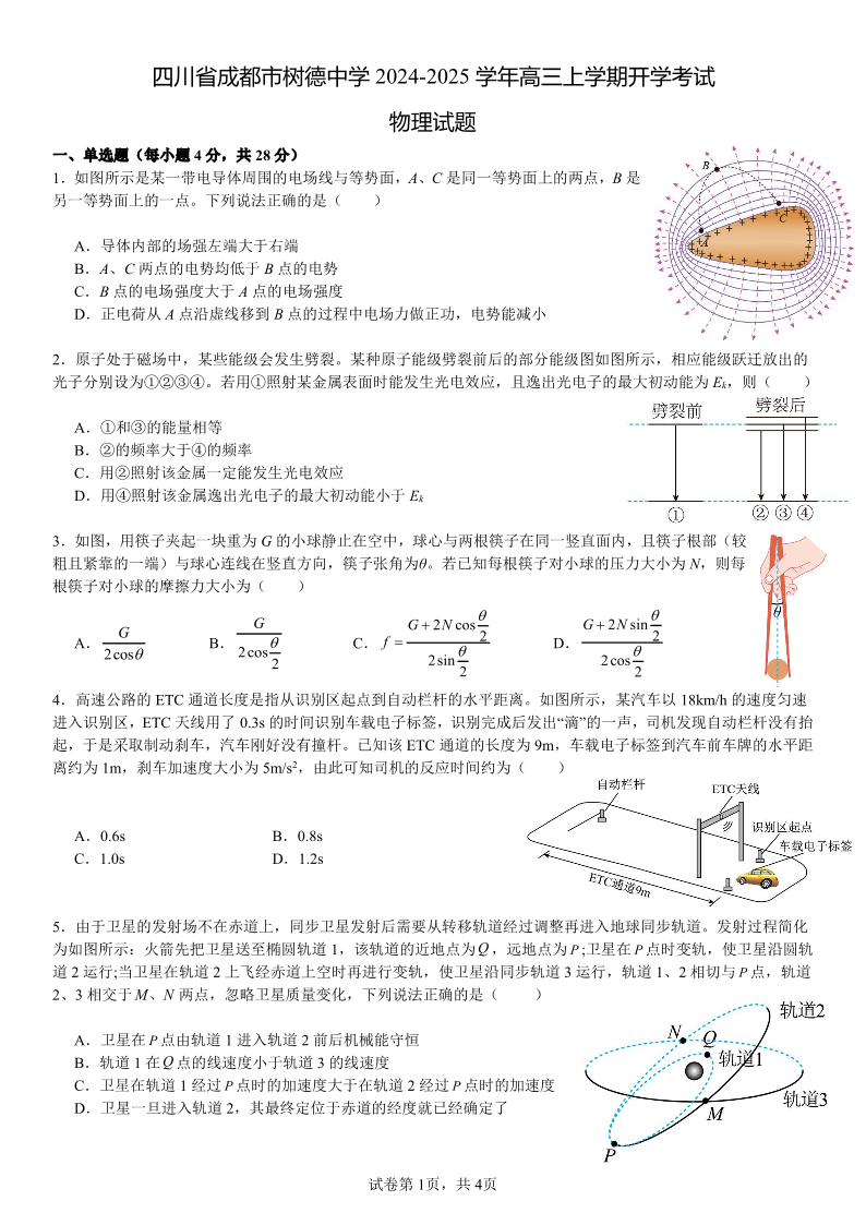 四川省成都市树德中学高2022级高三开学考试物理