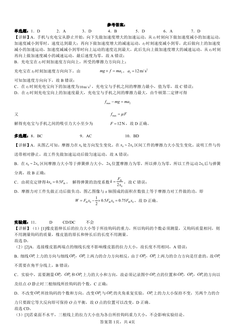 四川省成都市树德中学高2022级高三开学考试物理答案