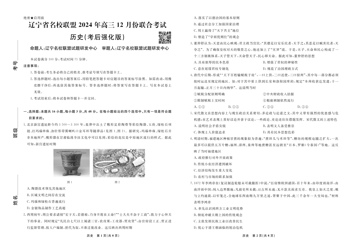 辽宁名校联盟2024年高三12月联考(考后强化版)历史