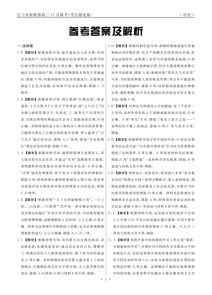 辽宁名校联盟2024年高三12月联考(考后强化版)历史答案