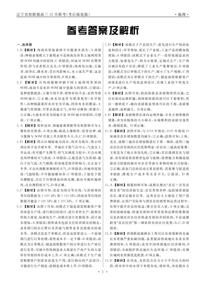 辽宁名校联盟2024年高三12月联考(考后强化版)地理答案