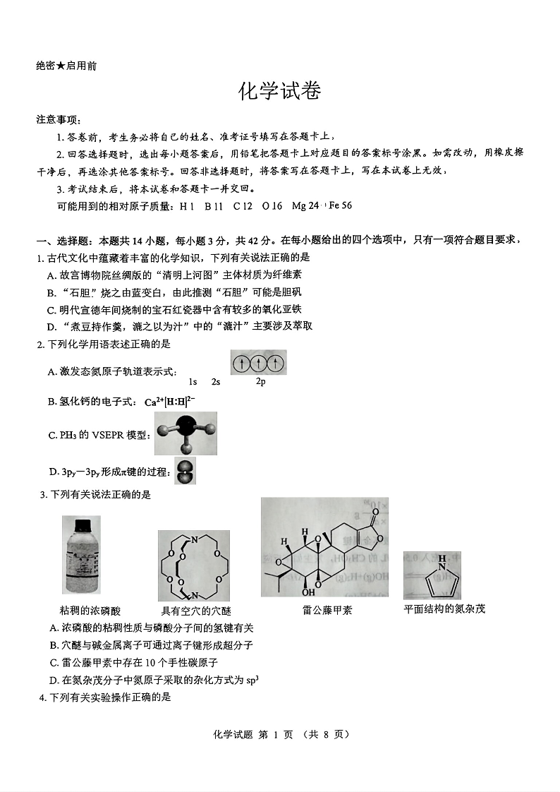 山西省三重教育2025届高三上学期12月联考化学