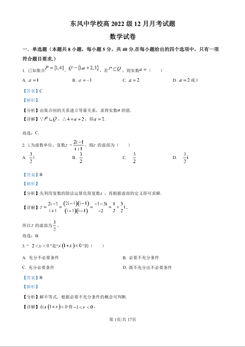 四川省南充市阆中东风学校2025届高三12月月考数学答案