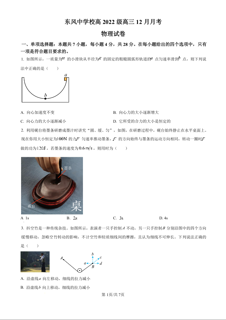 四川省南充市阆中东风学校2025届高三12月月考物理