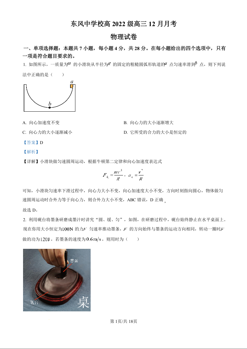 四川省南充市阆中东风学校2025届高三12月月考物理答案