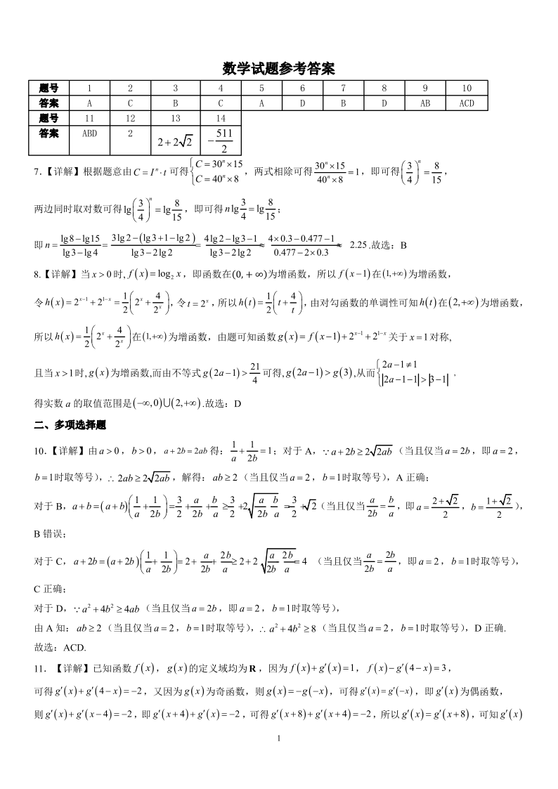 四川省遂宁市射洪中学高2022级高三一模考试数学答案