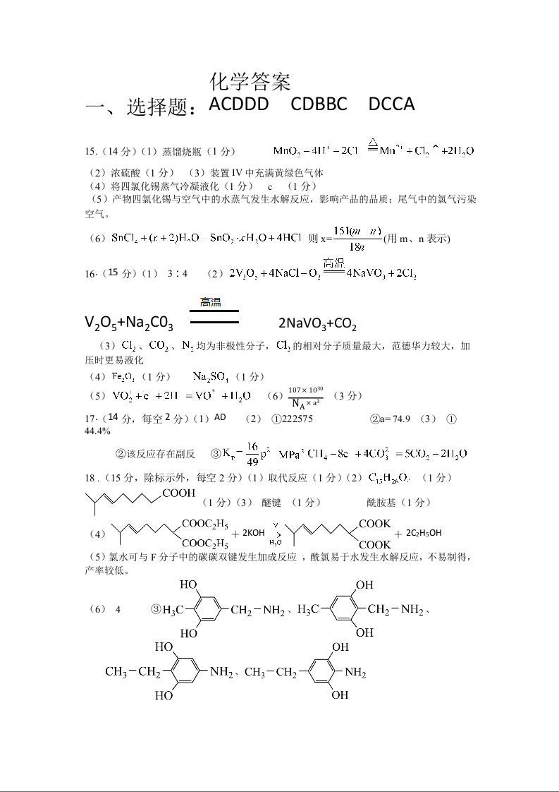 四川省遂宁市射洪中学高2022级高三一模考试化学答案