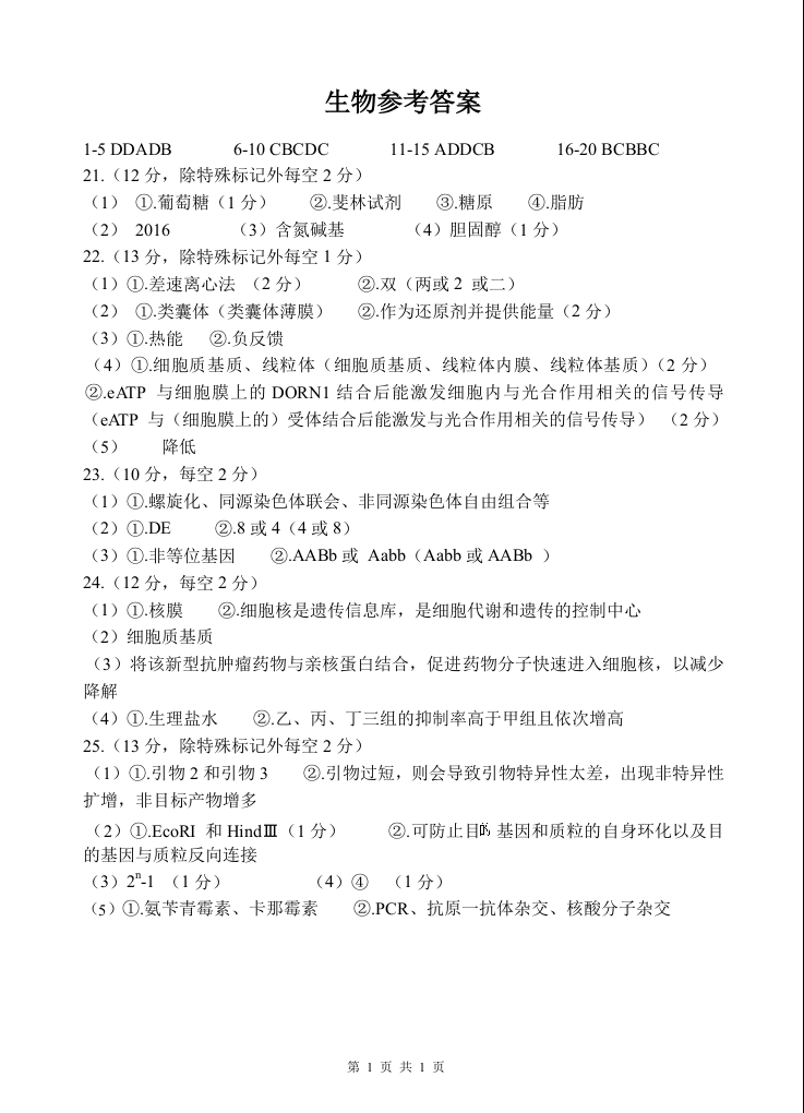四川省遂宁市射洪中学高2022级高三一模考试生物答案