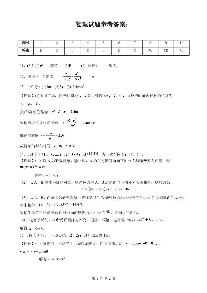四川省遂宁市射洪中学高2022级高三一模考试物理答案