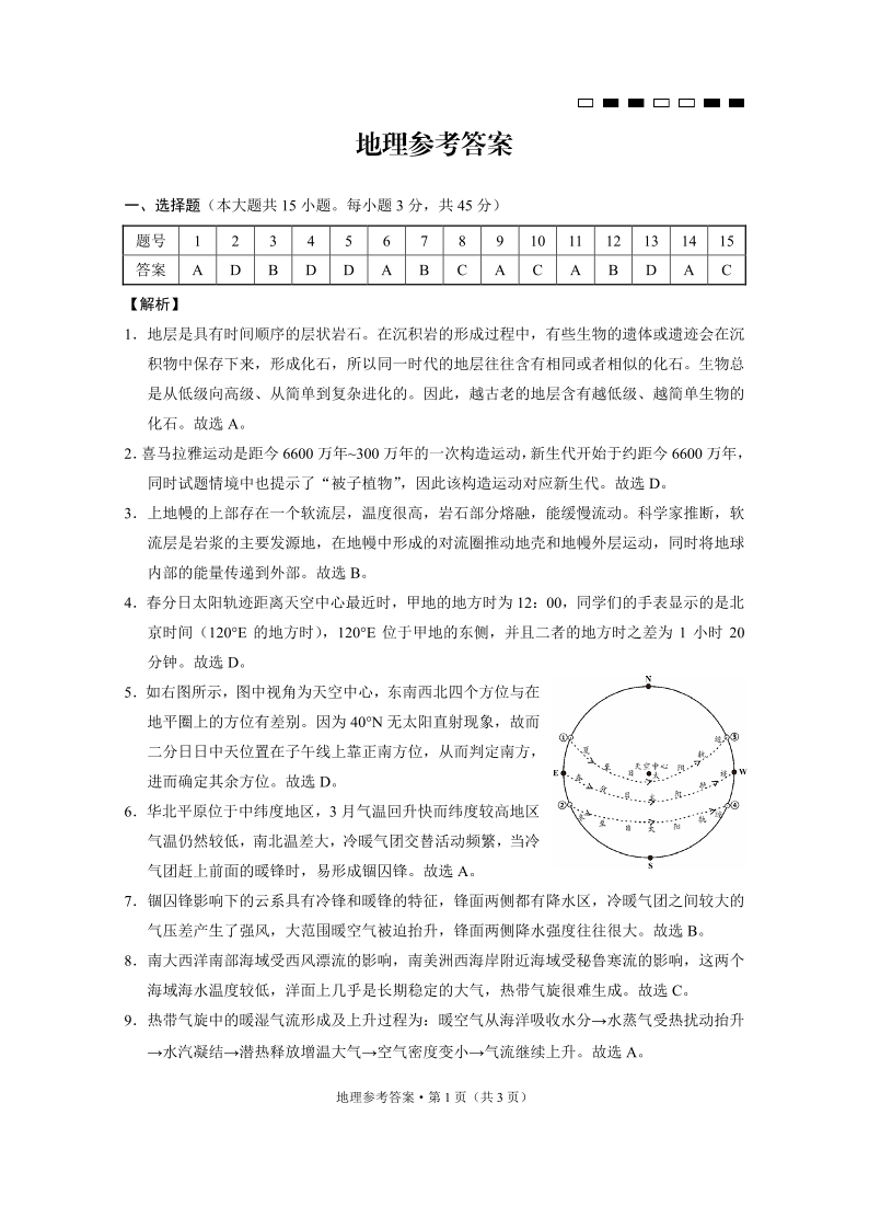 重庆市巴蜀中学2025届高考适应性月考卷(一)地理答案
