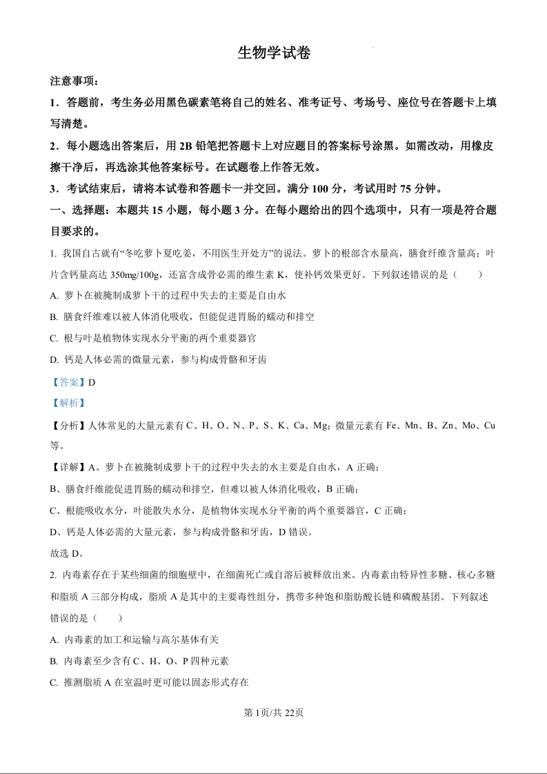 重庆市巴蜀中学2025届高考适应性月考卷(一)生物试题(解析版)
