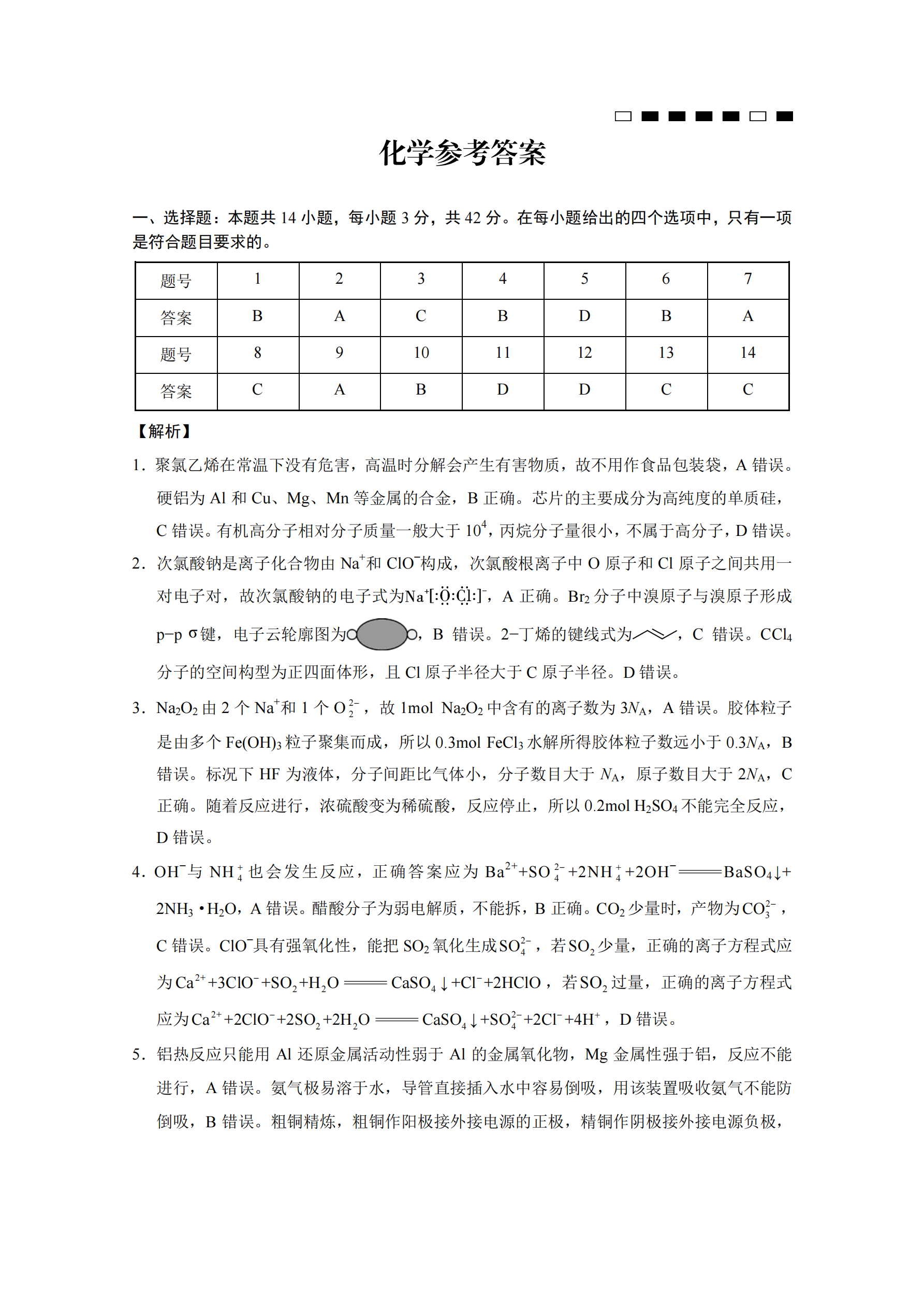 重庆市第八中学2025届高考适应性月考卷(一)化学答案