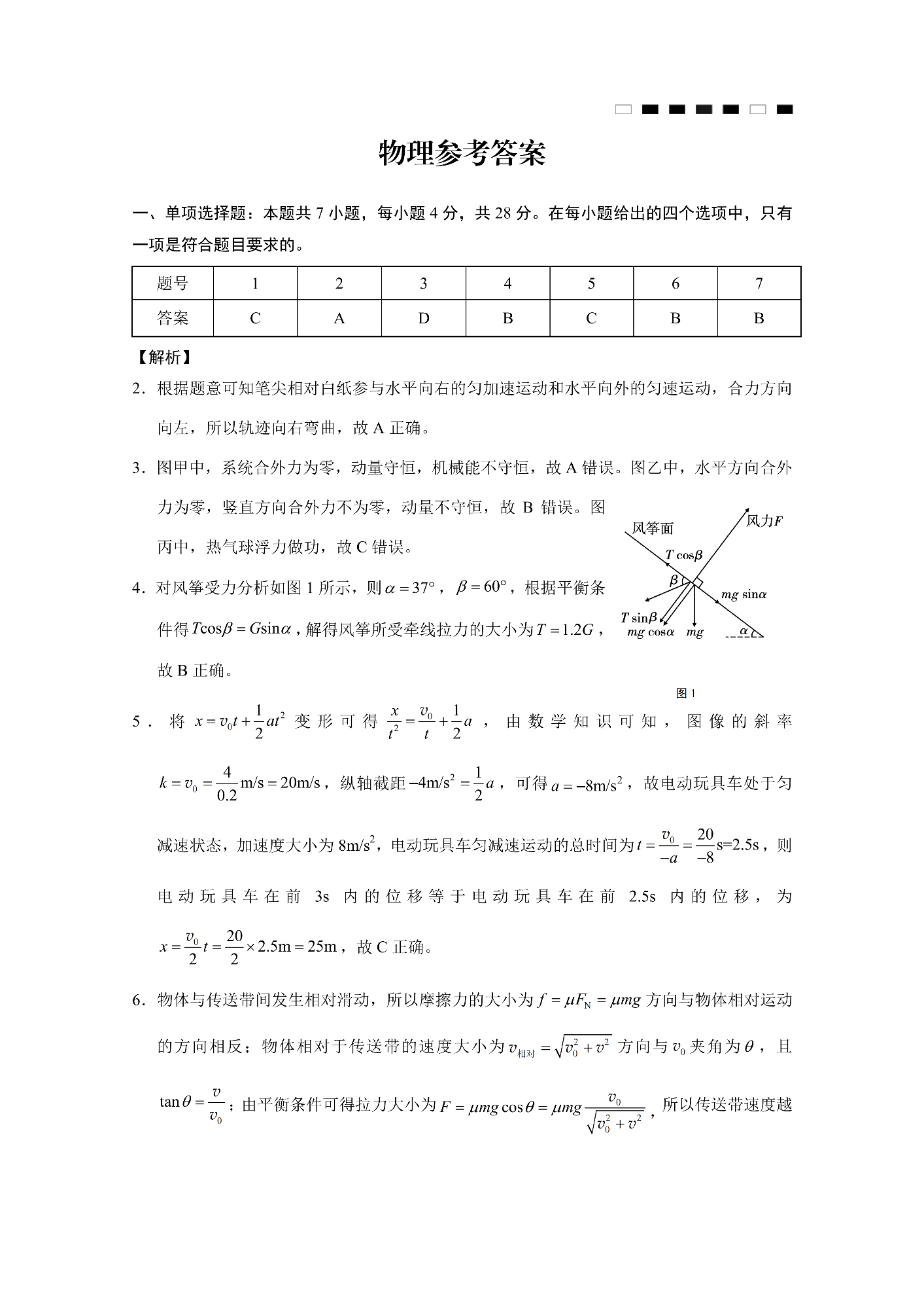 重庆市第八中学2025届高考适应性月考卷(一)物理答案