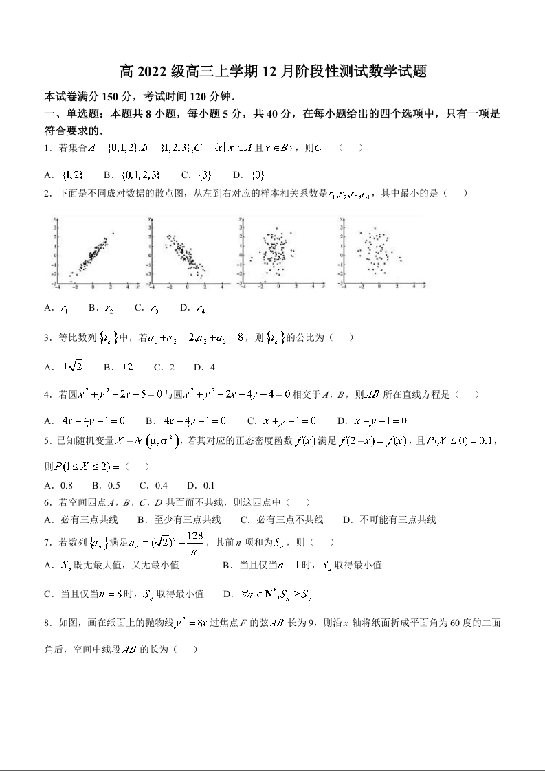 四川省成都市树德中学2025届高三上学期12月月考数学+答案