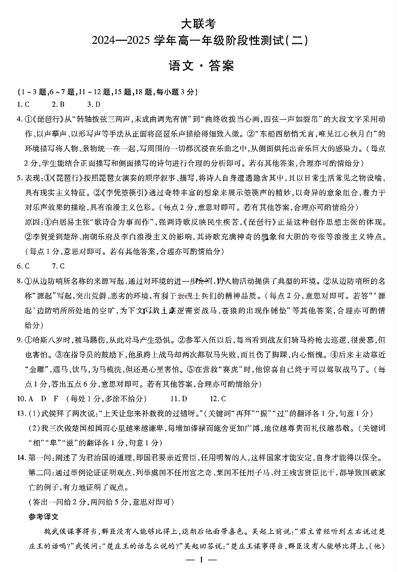 河南省区域高中2024-2025学年高一年级12月阶段性测试(二)语文答案