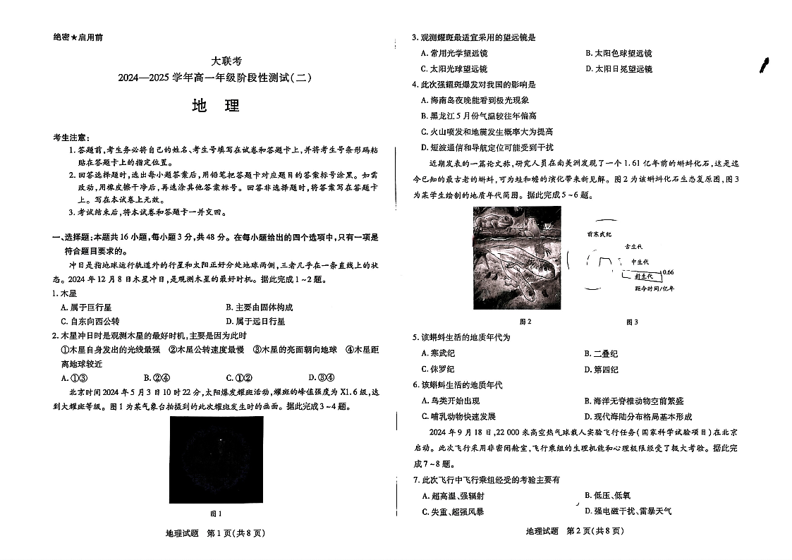 河南省区域高中2024-2025学年高一年级12月阶段性测试(二)地理