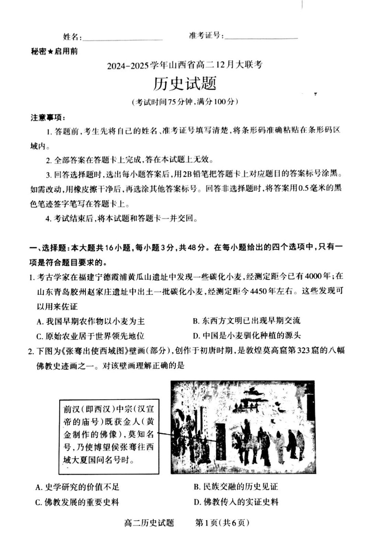 山西省晋城市2024-2025学年高二上学期12月月考历史+答案解析