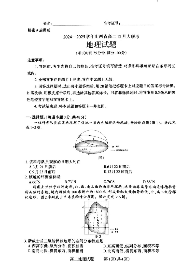 山西省晋城市2024-2025学年高二上学期12月月考地理+答案解析