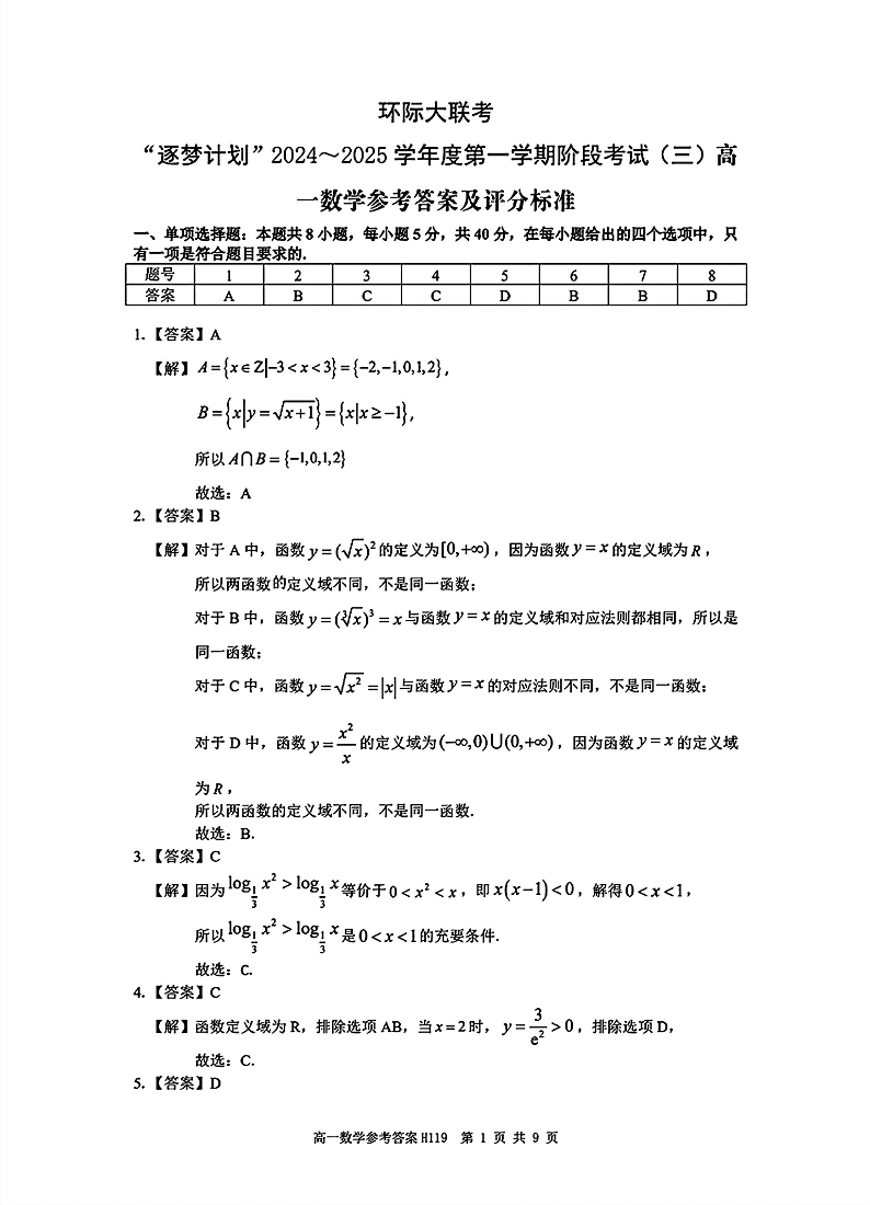 河南省环际大联考“逐梦计划”2024-2025学年上学期高一阶段性考试(三)数学答案