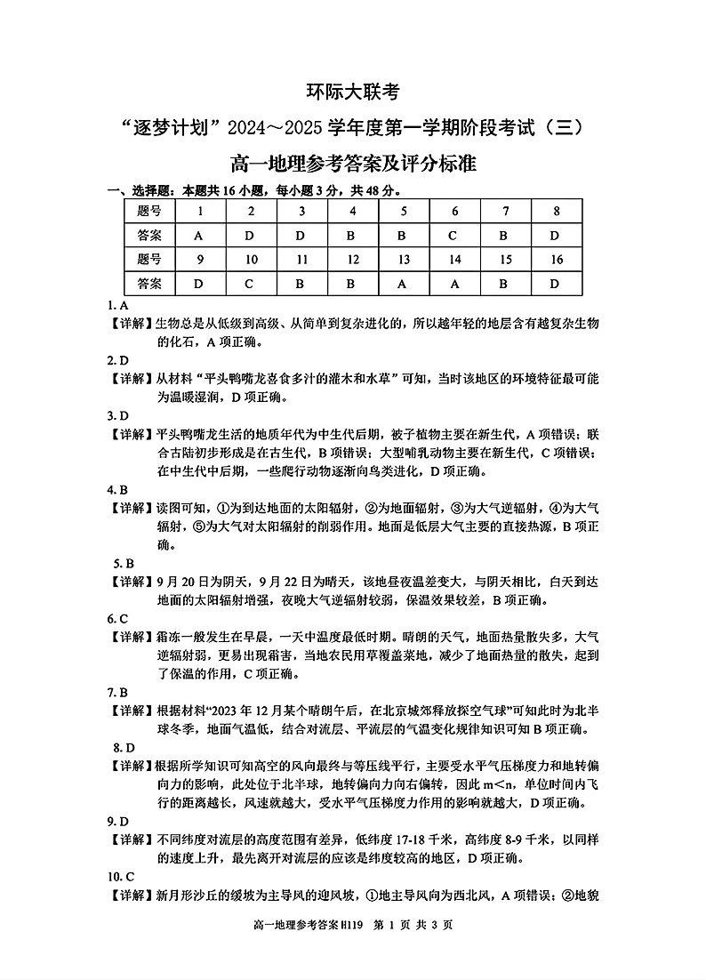 河南省环际大联考“逐梦计划”2024-2025学年上学期高一阶段性考试(三)地理答案