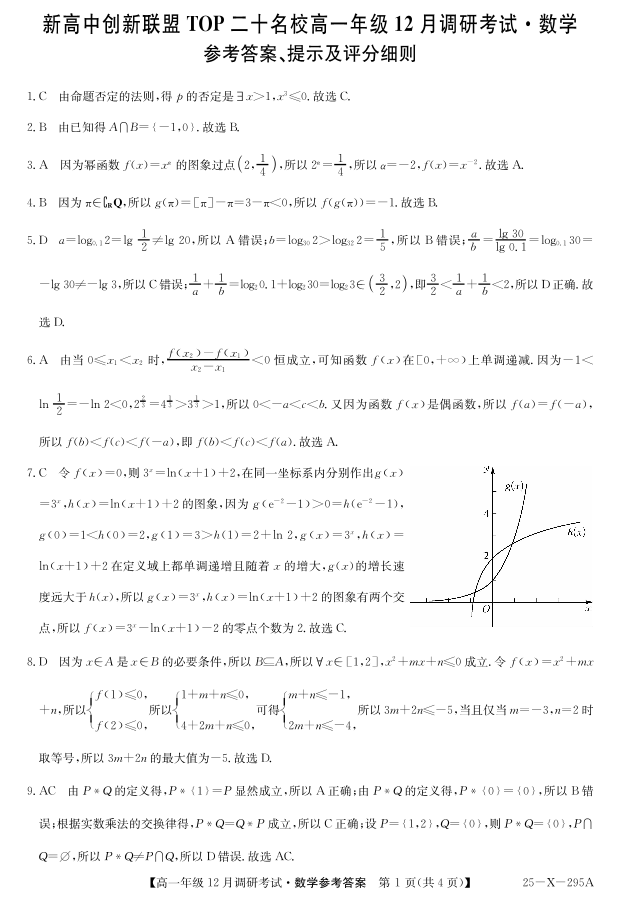 河南省TOP二十名校2024-2025学年高一上学期12月调研考试数学答案
