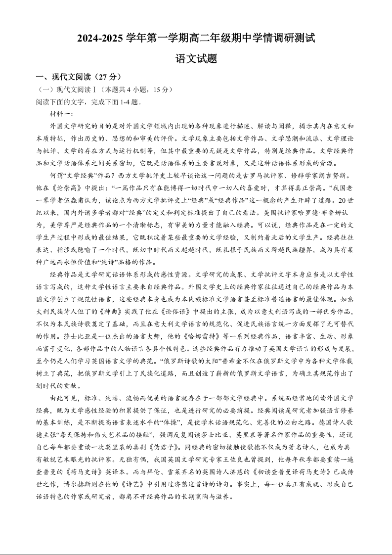 江苏省扬州市高邮市2024-2025学年高二上学期11月期中考试语文+答案