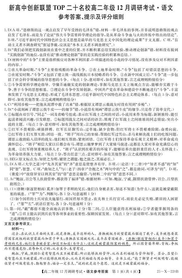 河南省TOP二十名校2024-2025学年高二上学期12月调研考试语文答案