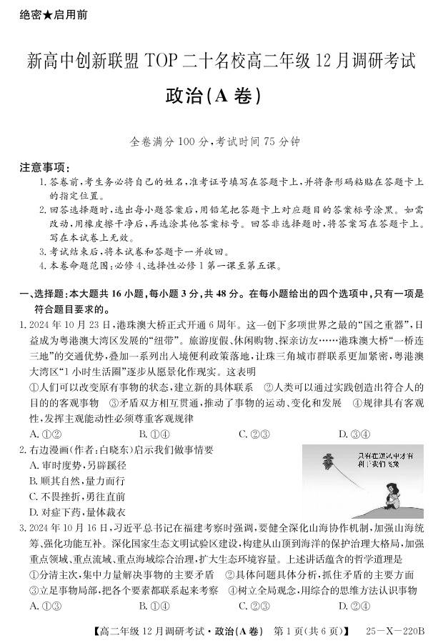 河南省TOP二十名校2024-2025学年高二上学期12月调研考试政治A