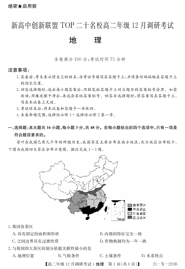 河南省TOP二十名校2024-2025学年高二上学期12月调研考试地理