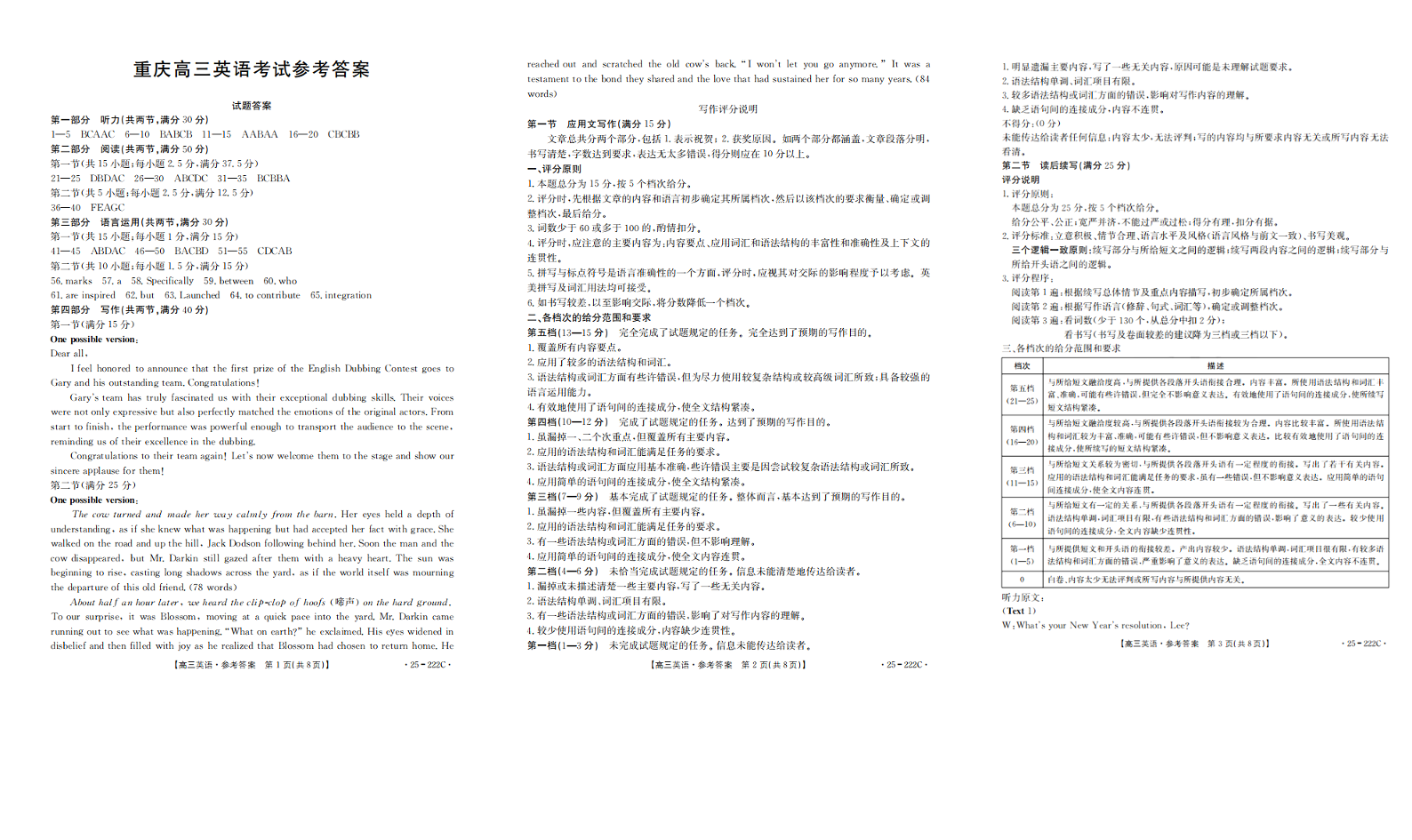 重庆市区域高中2025届高三年级12月联考测试英语答案