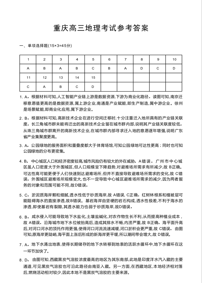重庆市区域高中2025届高三年级12月联考测试地理答案