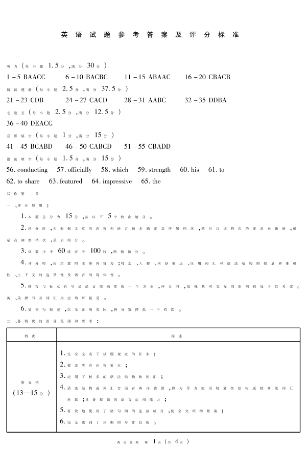 四川省雅安市等九市2025届高三年级第一次诊断性考试英语答案