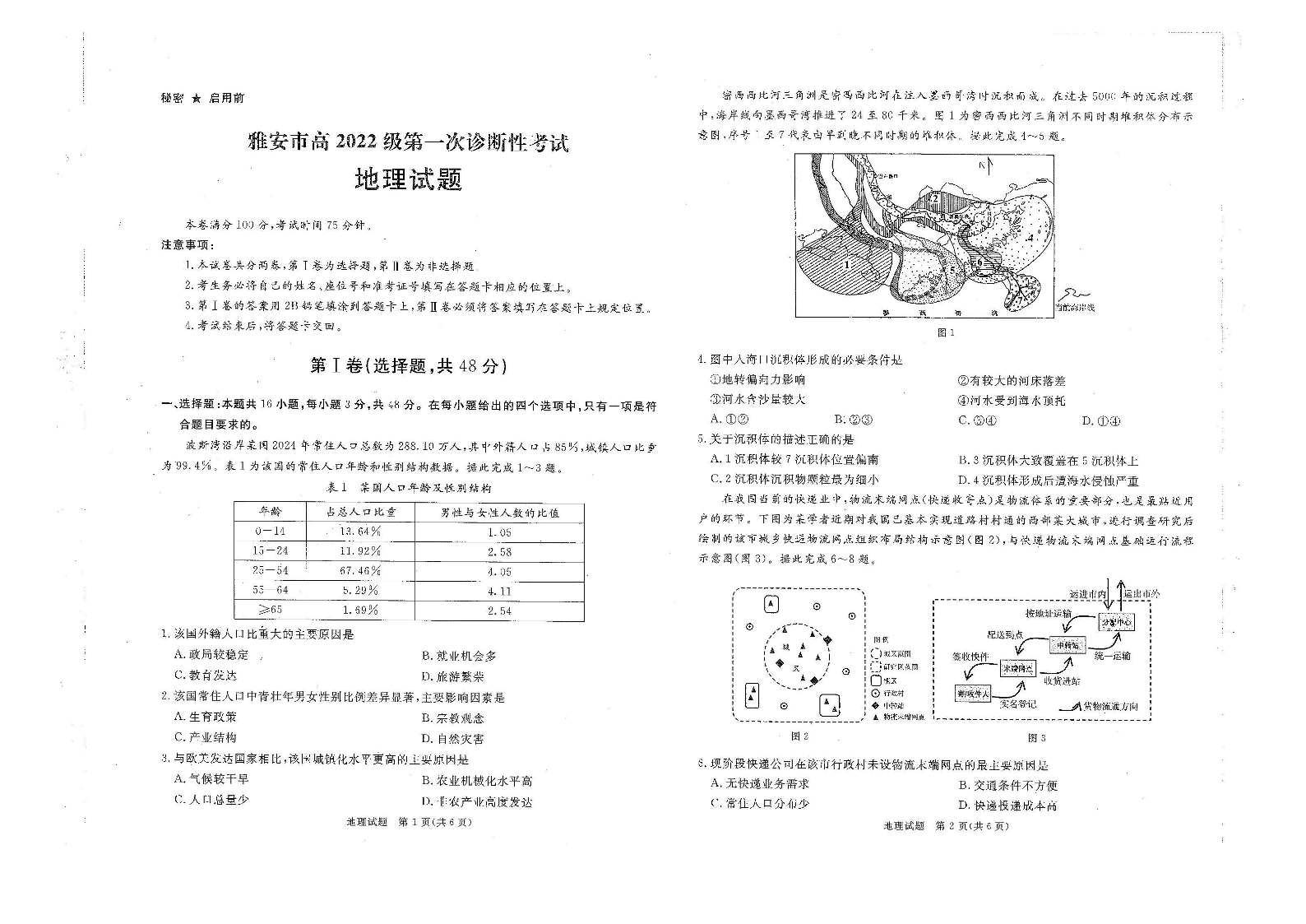 四川省雅安市等九市2025届高三年级第一次诊断性考试地理