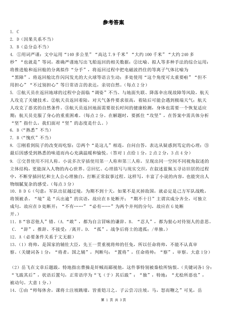 四川省成都市第七中学2025届高三上学期12月阶段性考试语文答案