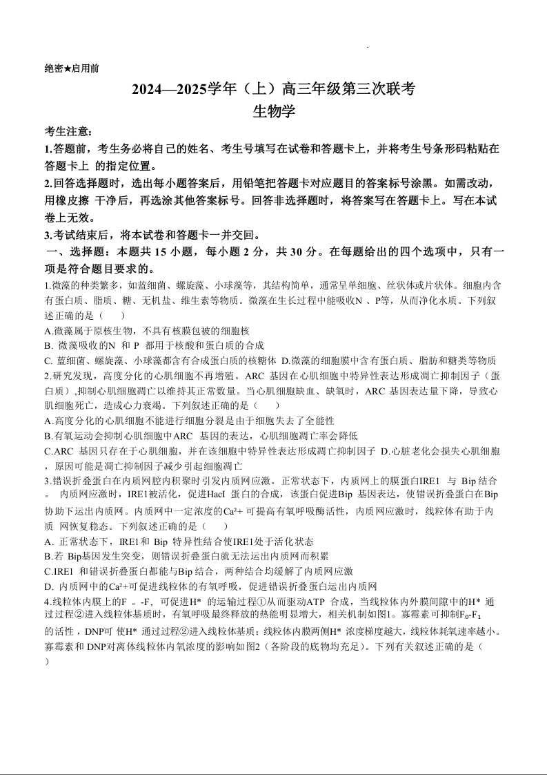 山东省齐鲁名校联盟2025届高三年级上学期第三次联考生物+答案