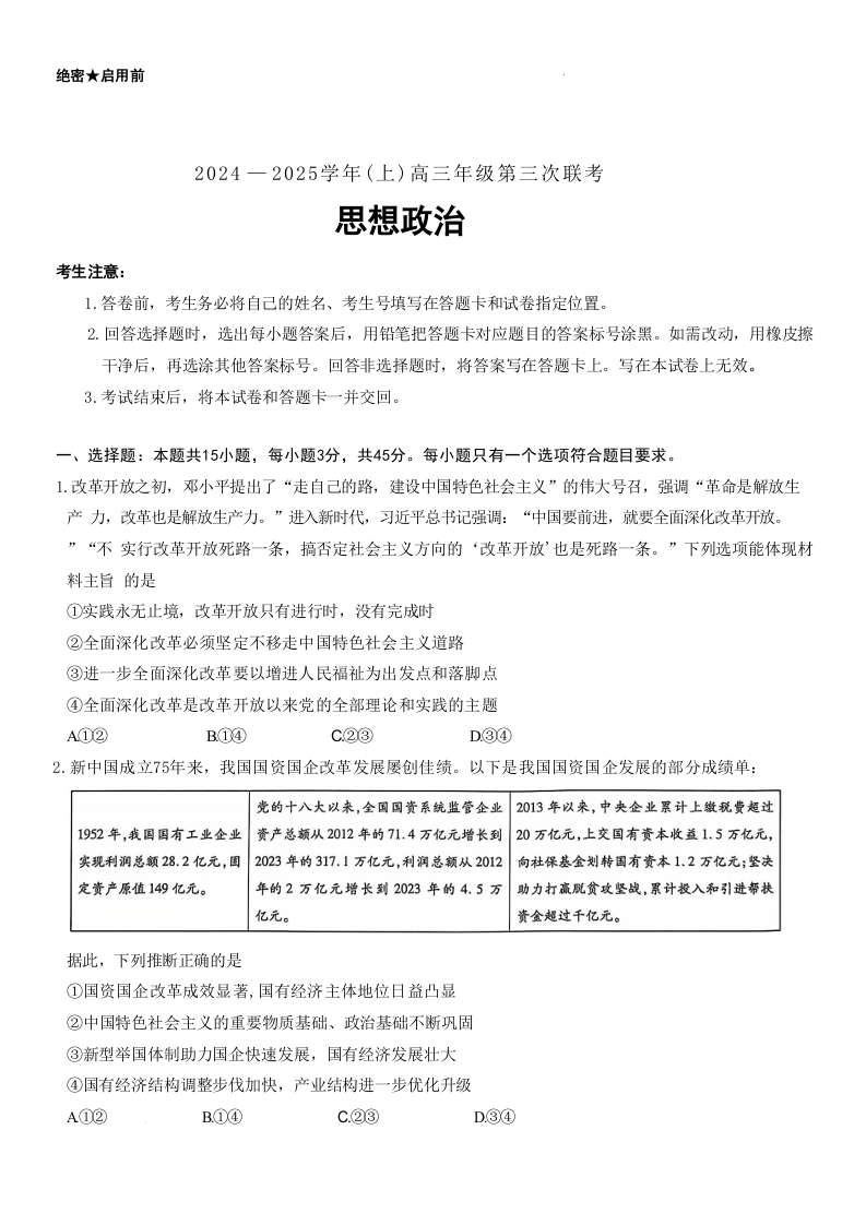 山东省齐鲁名校联盟2025届高三年级上学期第三次联考政治