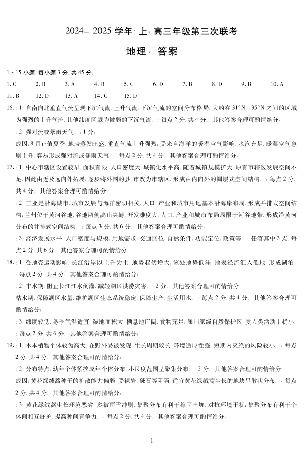 山东省齐鲁名校联盟2025届高三年级上学期第三次联考地理答案