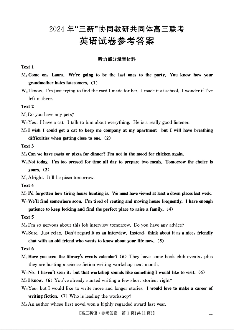 江西省“三新”协同教研共同体名校2025届高三上学期12月联考英语答案