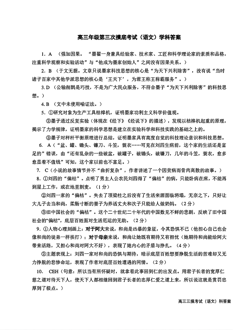 吉林省东北师大附中2025届高三上学期第三次模拟考试语文答案