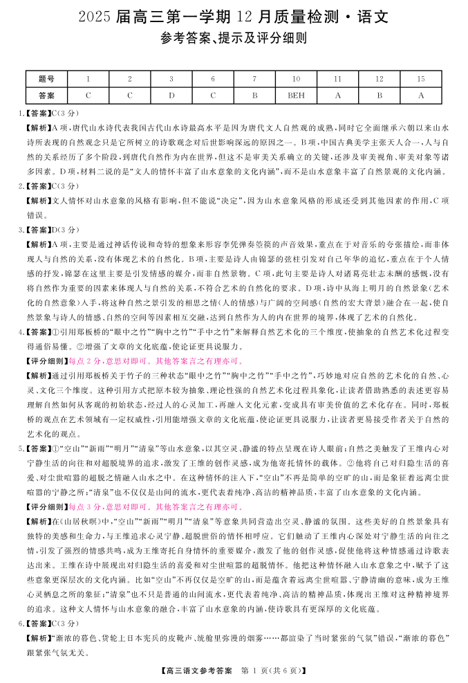河南省华师联盟2025届高三第一学期12月质量检测语文答案
