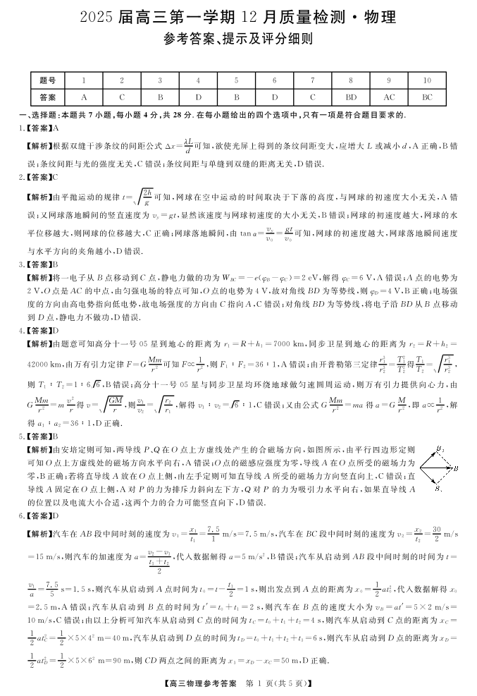 河南省华师联盟2025届高三第一学期12月质量检测物理答案
