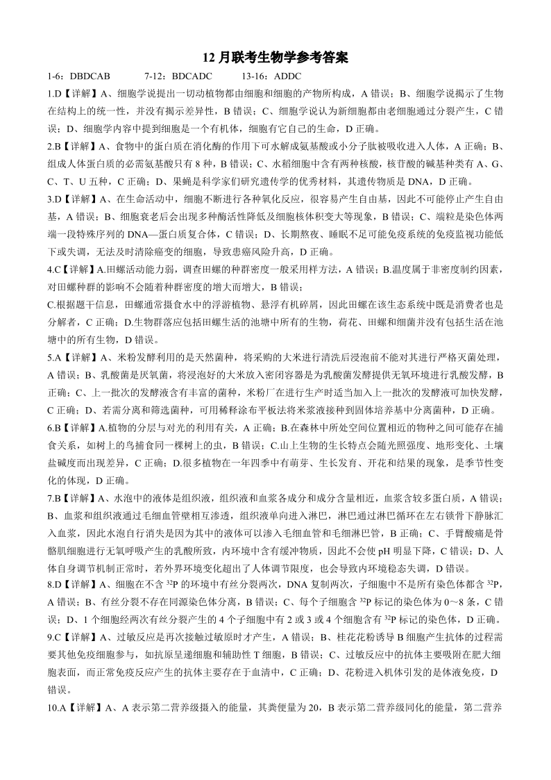 广西省邕衡教育•名校联盟2025届高三上学期12月联考生物答案