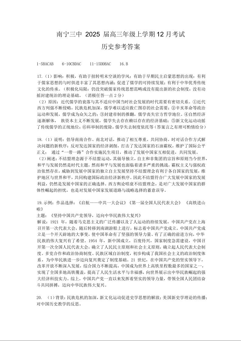 广西省邕衡教育•名校联盟2025届高三上学期12月联考历史答案