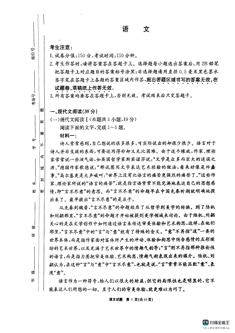 安徽省师大附中等名校2025届高三年级12月阶段性联考检测语文+答案