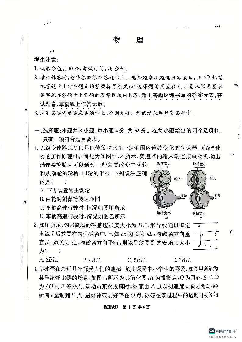 安徽省师大附中等名校2025届高三年级12月阶段性联考检测物理