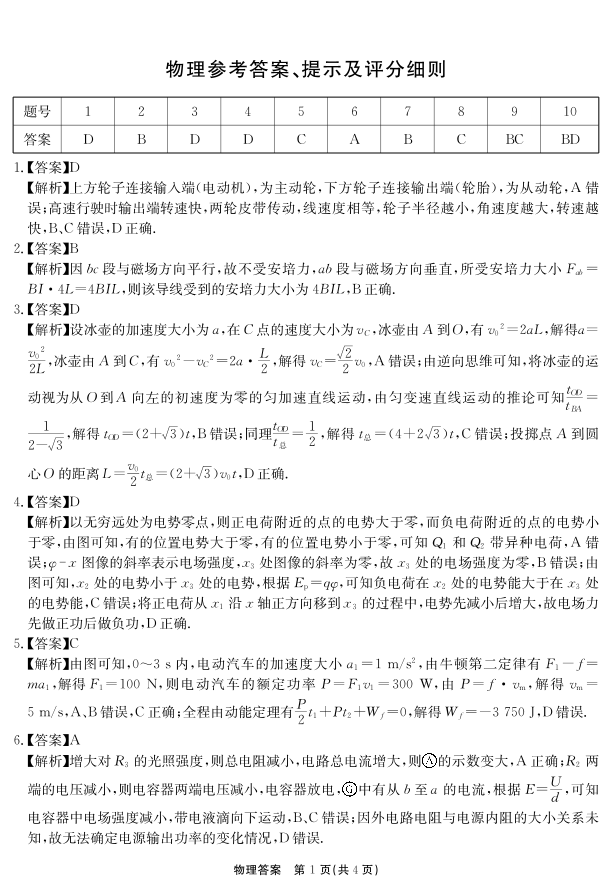 安徽省师大附中等名校2025届高三年级12月阶段性联考检测物理答案
