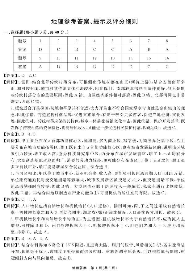 安徽省师大附中等名校2025届高三年级12月阶段性联考检测地理答案